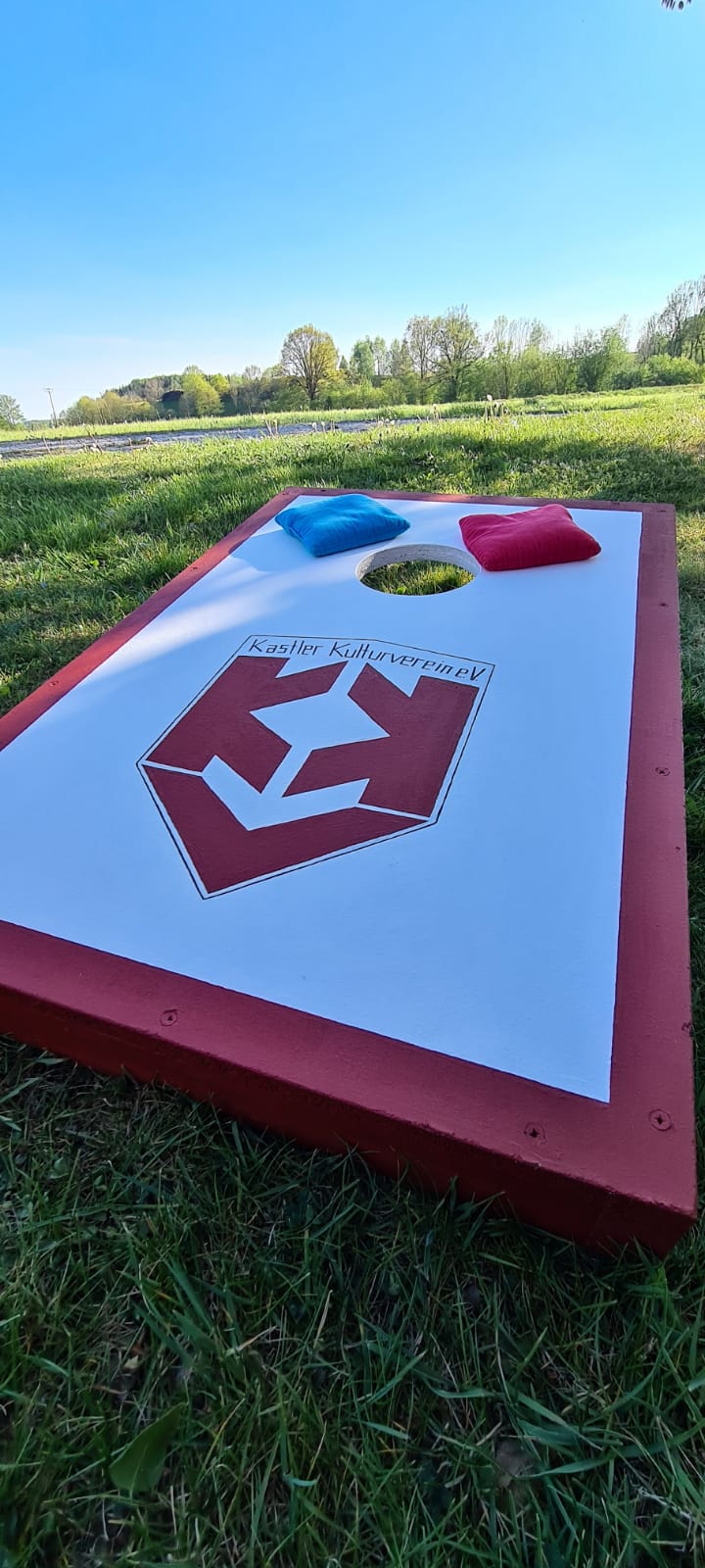 Wir gehen in die Vorbereitungen für die alljährliche Cornhole-Ortsmeisterschaft. Mittlerweile zum 6. Mal wird im August entschieden, wer am besten mit Maissackerl auf die berüchtigt schrägen Plattformen werfen kann. Das Spiel ist vor allem in den Vereinigten Staaten bekannt, auf Wikipedia bekommt ihr ein paar Informationen darüber.